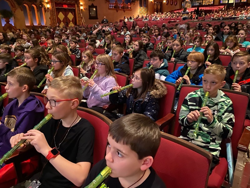 On Wednesday, March 15th, O. H. Somers fourth grade students participated a Link Up! performance, in collaboration with the Akron Symphony Orchestra and Carnegie Hall at Akron Civic Theater. The students performed selections such as Ode to Joy and New World Symphony on the recorder, as well as vocal selections such as Oye!, alongside 20+ other school districts in the area. This experience gave our students the opportunity to not only watch an orchestra perform, but allowed them to perform with the orchestra from their seats with the rest of the audience.