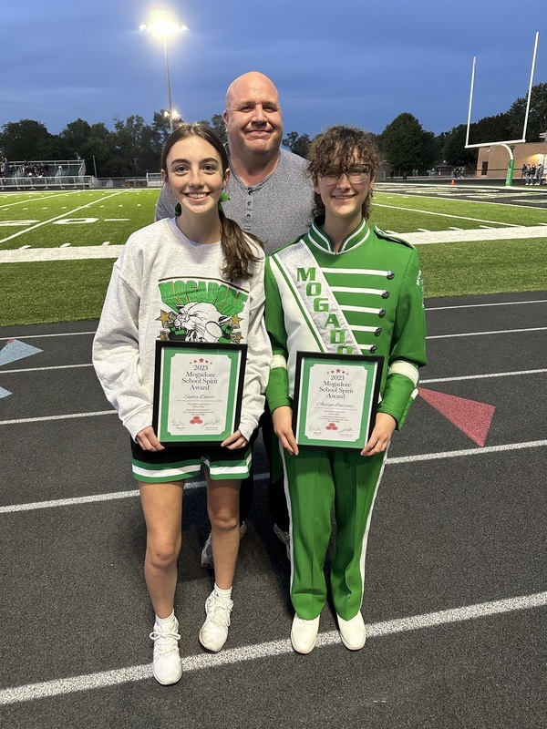 Saturday, September 16th, Spencer Barlow from State Farm, presented two “Mogadore School Spirit Awards” on behalf of Brian Hoy. Sophia Dewitt (MHS Cheer) & Austyn Lawrentz (MHS Band) were awarded. Thank you, Spencer & Brian at State Farm, for recognizing these students!
