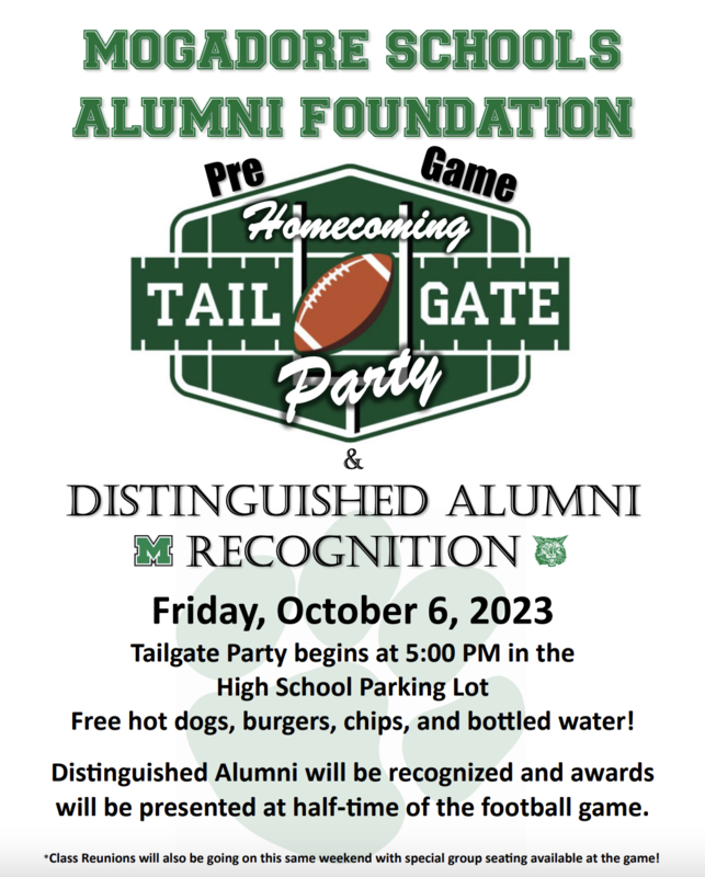 Wildcat Alumni and fans are invited to attend the 2023 MSAF Distinguished Alumni Annual Tailgate party on Friday, October 6th at 5:00 in the high school parking lot.